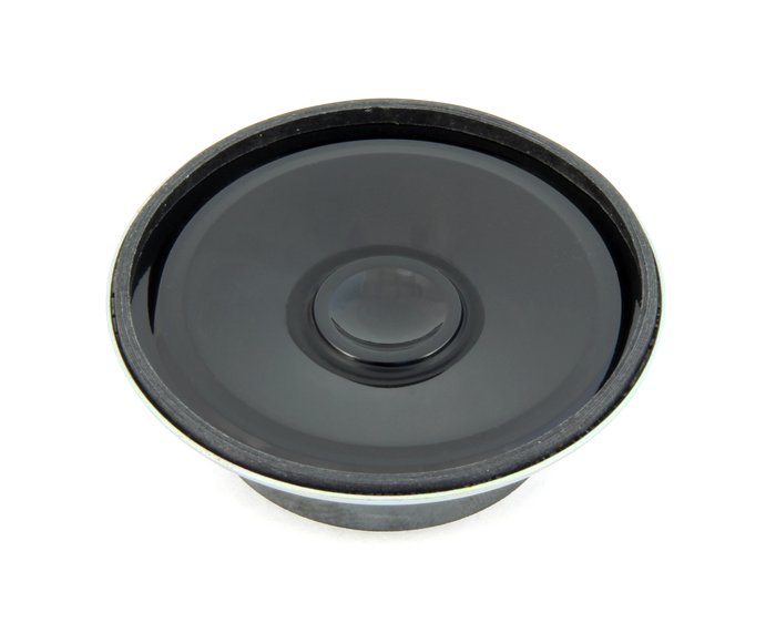2,8 cm (1,1") Kleinlautsprecher mit Kunststoffmembran und rundem Kunststoffkorb. Geringe Baugröße, deshalb geeignet zur Signalausgabe in Geräten, in denen wenig Platz zur Verfügung steht. Der Anschluss erfolgt über rückseitig angebrachte Federkontakte.