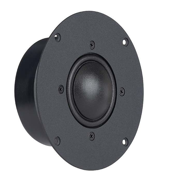 50 mm (2") High-End Gewebekalotte mit runder Frontplatte für den Mitteltonbereich zwischen 800 und 7000 Hz. Durch die optimale Kalottenform mit dämpfender Beschichtung, in Verbindung mit einer Gewebesicke, die eine besonders hohe Dämpfung aufweist, wird ein linearer und partialschwingungsfreier Frequenzgang erreicht. Der kräftige Magnetantrieb und die mit Ferrofluid gekühlte Schwingspule garantieren sowohl hohen Wirkungsgrad als auch hohe Belastbarkeit.