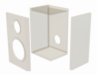 The case consists of straight panels glued edge to edge what makes the construction possibly easy. First the single panels (see cabinet parts list) are cut and glued together. The panel fixation succeeds with vices or package adhesive tape.