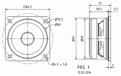 6.5 cm (2.5") fullrange speaker with balanced frequency response and very good highs. Especially suitable as built-in speaker for music reproduction and as driver for 100 V network column speakers. Outstandingly high efficiency compared to the small size. Equivalent to model FRS 7 A - 8 Ohm, but with soldering lugs 2.7 x 0.3 mm (+) and 2.7 x 0.3 mm (-).